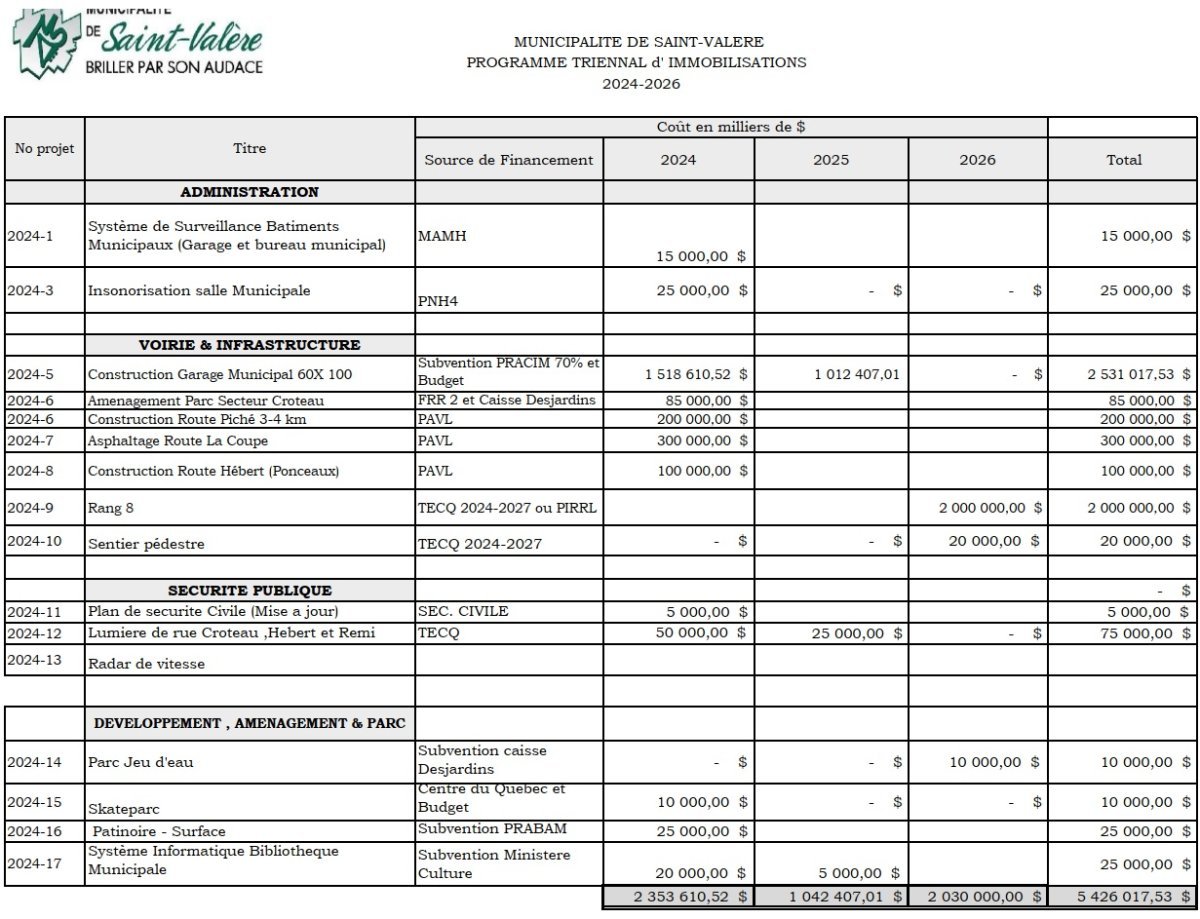Programme triennal d'immobilisation 2024-2026