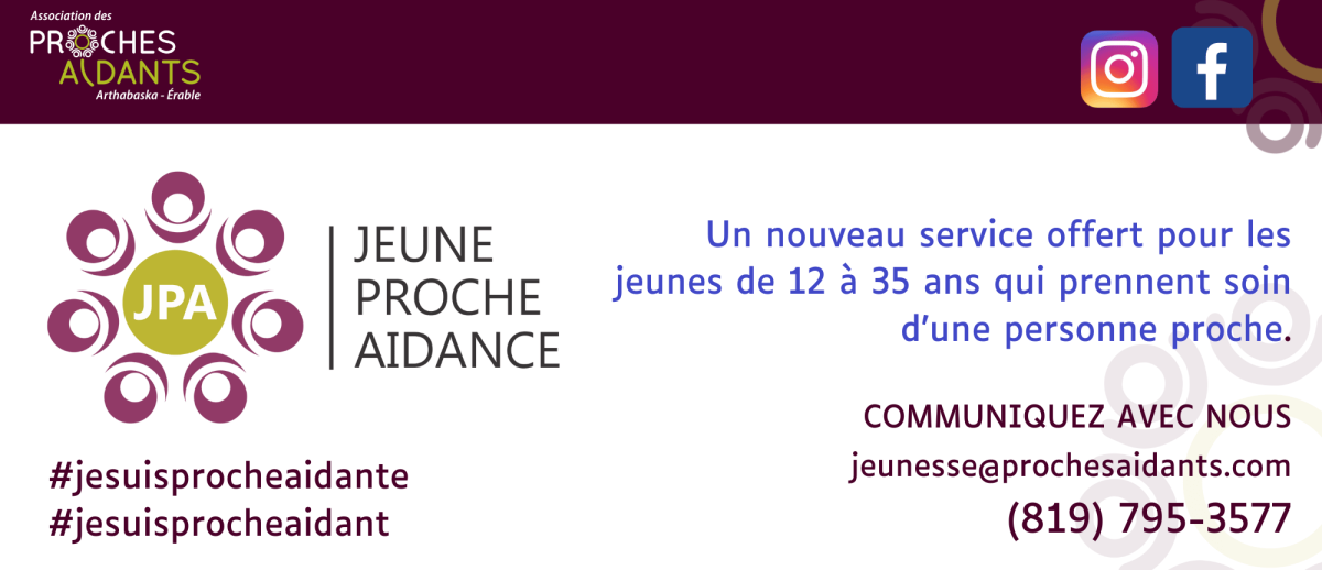 Pour en connaître davantage sur la jeune proche aidance, suivez-nous sur notre page Facebook (https://www.facebook.com/jeune.proche.aidance/) ou sur Instagram (https://www.instagram.com/jeune.proche.aidance/).